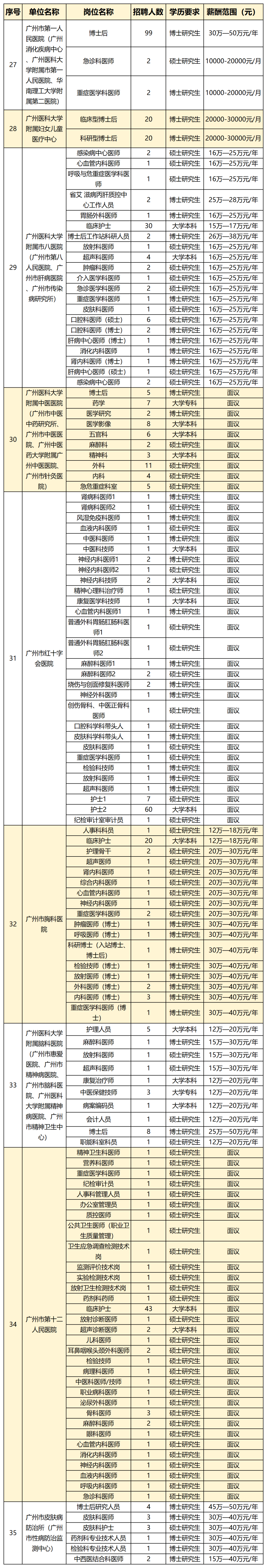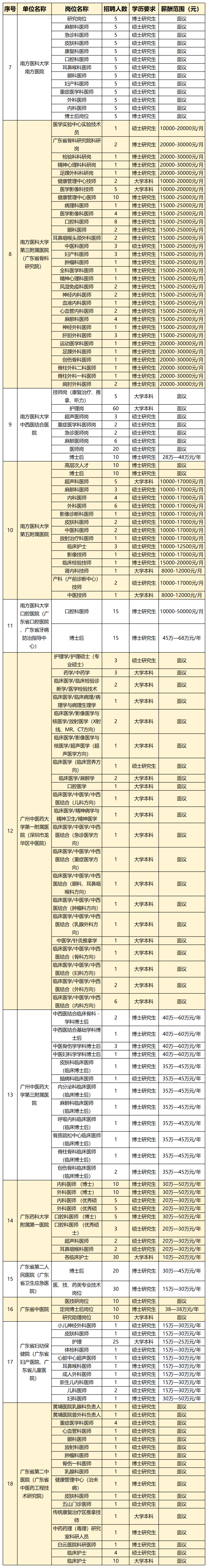 由广州市卫生健康委统筹组织,中山大学各附属医院、南方医科大学各附属医院等省部属医院,广州医科大学及各附属医院,广州市卫生健康委各直属事业单位、广州区属医院,30余家优质单位集中招聘。